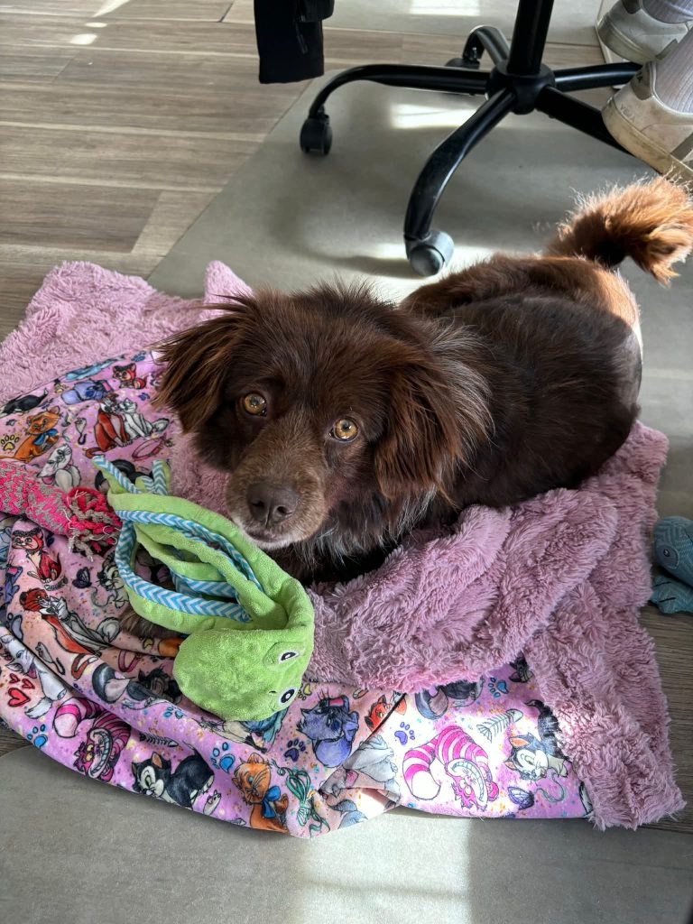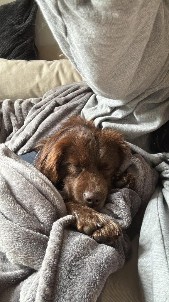 I’m a three year old spaniel-mix and I’ve been told I’m very good at two things; snuggling and loving my humans!