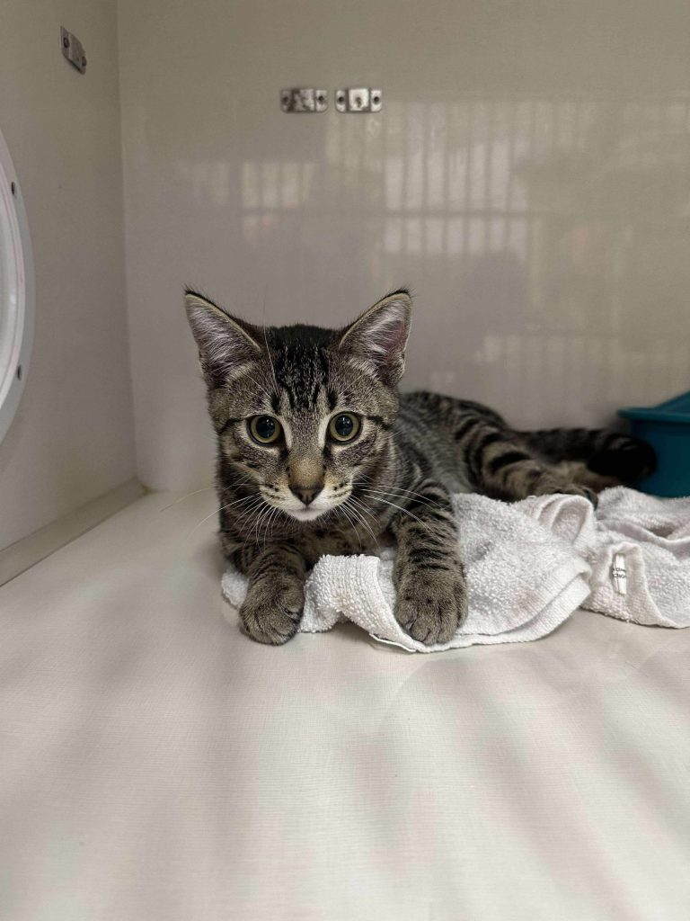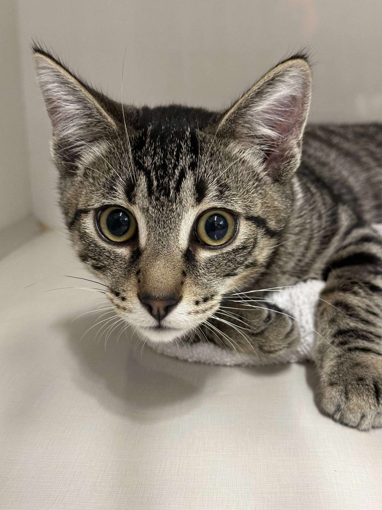 I’m still a bit cautious, but I’ve made huge progress since those early days. I love to watch what’s going on, and when I feel safe, my sweet and curious side starts to shine through. I may take a little time to trust new people, but once I do, you’ll see a gentle and affectionate kitten who just needed a chance.