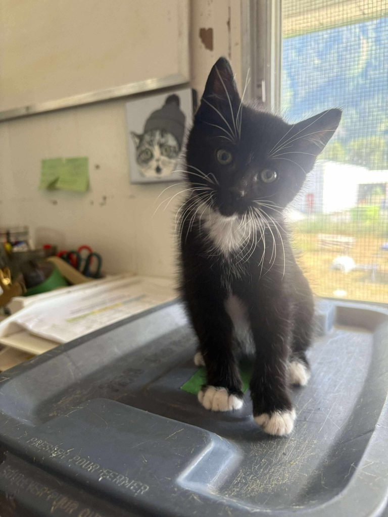 I’m the tuxedo explorer of the litter — bold, busy, and always on a mission. I was the first to discover the couch, the first to climb a leg, and definitely the first to figure out how to get into things I probably shouldn’t. I’m full of kitten curiosity and have a real “what’s that and how do I climb it” approach to life.