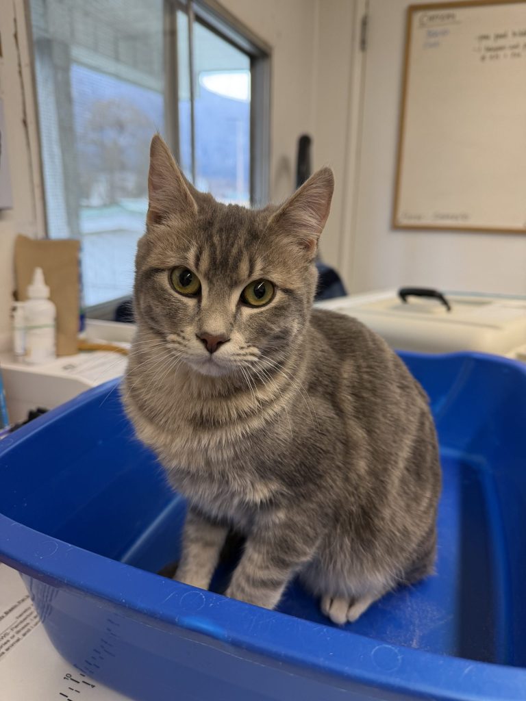 Since arriving at the shelter with his siblings, Mazama and Shasta, Tahoma hasn’t stopped providing entertainment and offers of affection. At six months old, this handsome peach toned tabby boy is happiest when the people are around, play is on offer and ear scratches are abundant.