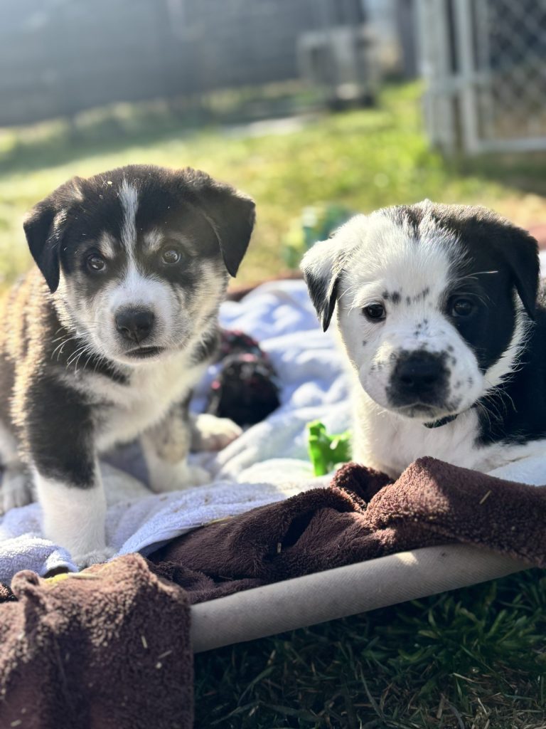We’re a mix of mixed breeds, so exactly what I am is a bit of a mystery! Our mom is around 60 to 70lbs and dad is unknown, though we suspect there may be some Pyrenees in there. We will likely grow into large dogs, but nothing is guaranteed.